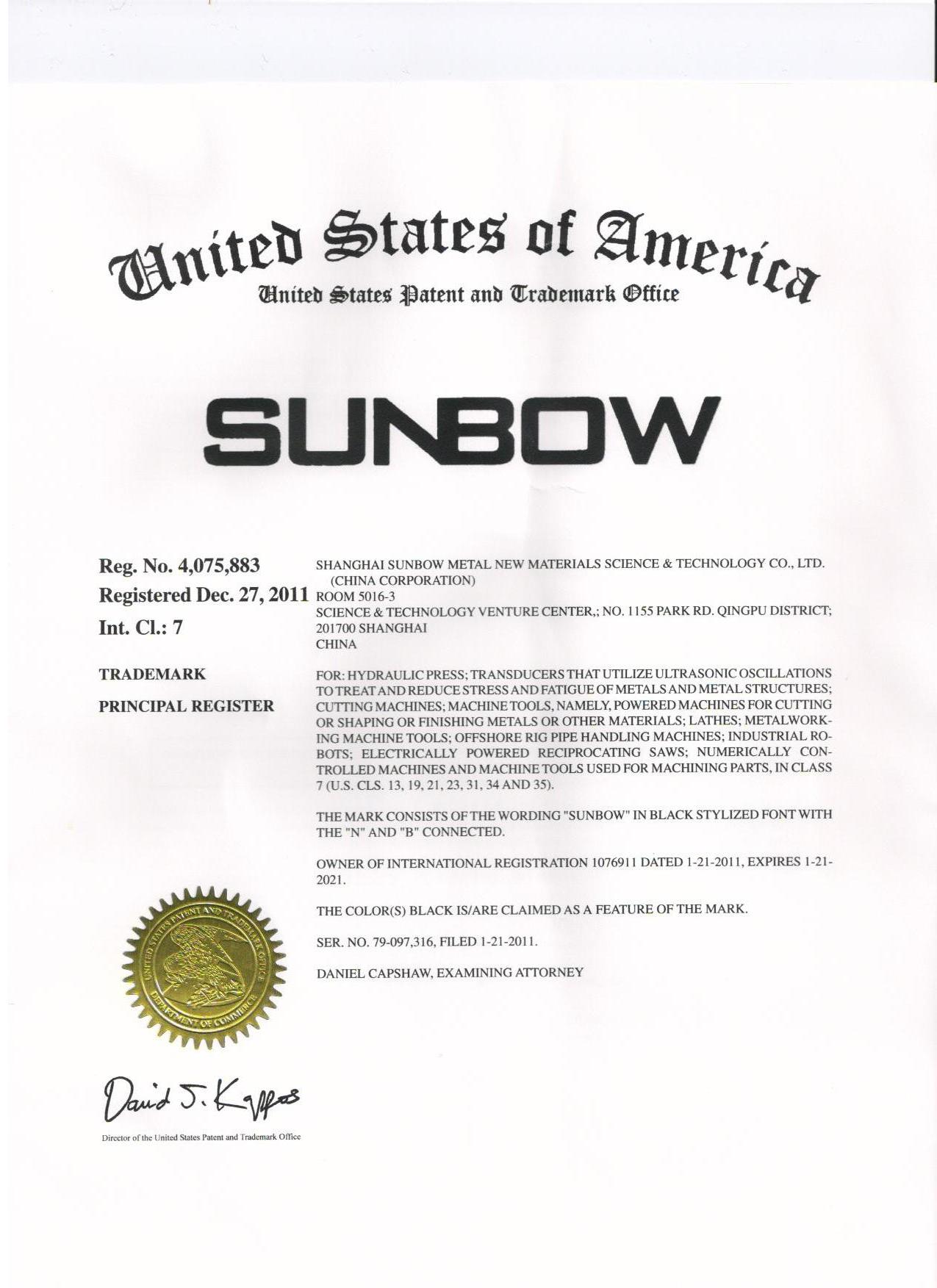 SUNBOW TRADEMARK IN USA |