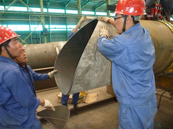 图五 Ф350mm*2.5mm不锈钢管弯头制作 |