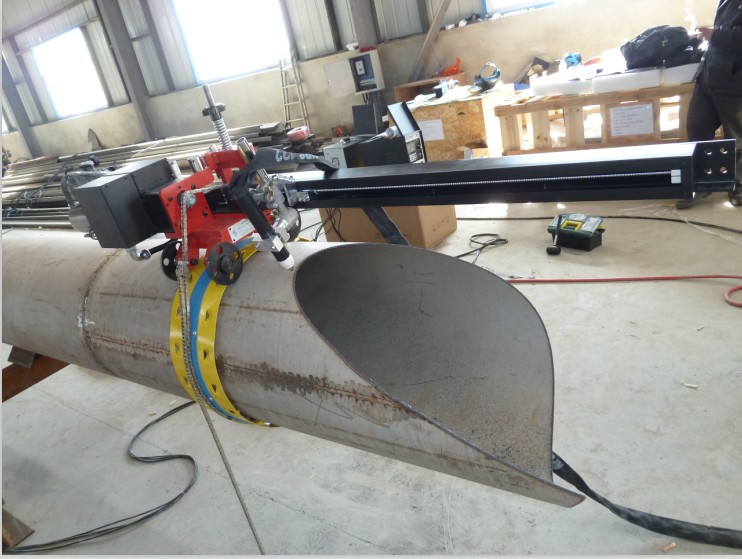 答:可以切割,因为设备是沿着钢管表面爬行的,圆度不好对焊枪的相对位置基本没影响。图四的管子是Ф1600mm*3mm的不锈钢管,由于径厚比较大,管子正常放置时就成椭圆行,但依然不影响切割。